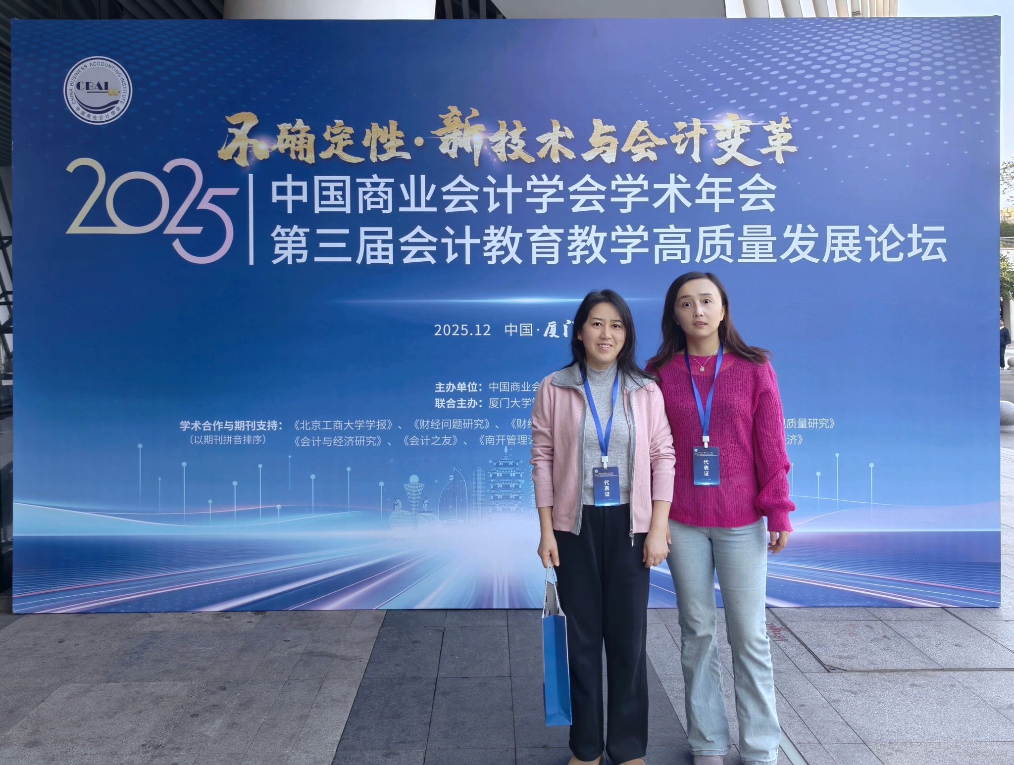12月5日-7日,“中国商业会计学会2025年学术年会暨第三届会计教育教学高质量发展论坛”在厦门顺利举行,来自全国高校、科研院所及企业界的200余位专家学者齐聚一堂,共同探索深刻变革的时代背景下,会计审计学科的发展路径与创新型人才的培养之道,会议由中国商业会计学会主办、厦门大学管理学院会计学系联合主办。我院丁红梅和高莉两位教师应邀参会。