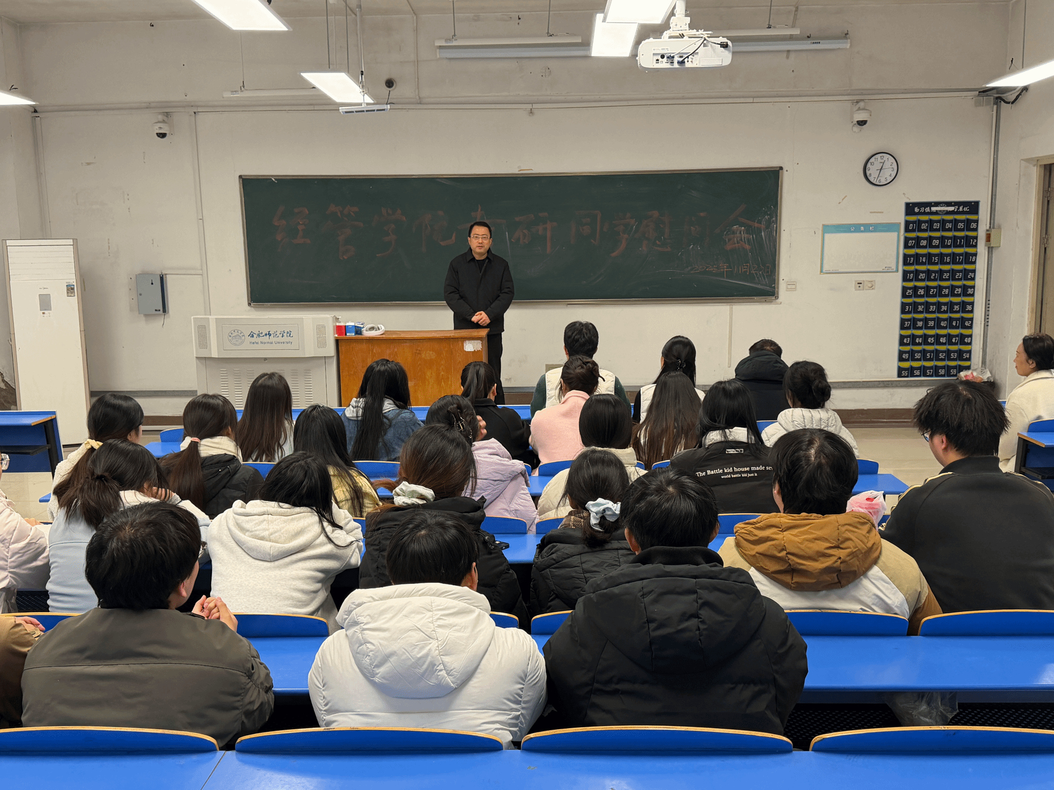 为激励经管学院考研学子在冲刺阶段坚定信念、全力备考,11月20日,我院在逸夫楼A106教室举行考研慰问会。学院党政领导班子和毕业班辅导员出席会议,与同学们亲切交流,送上学院的殷切关怀与诚挚祝福。本次慰问会由党委副书记陶敏主持。