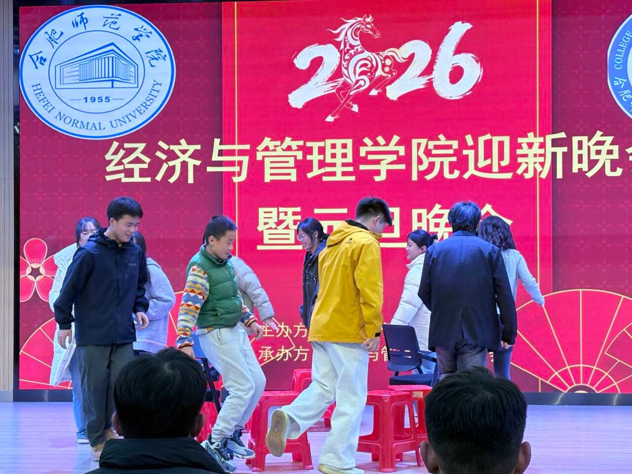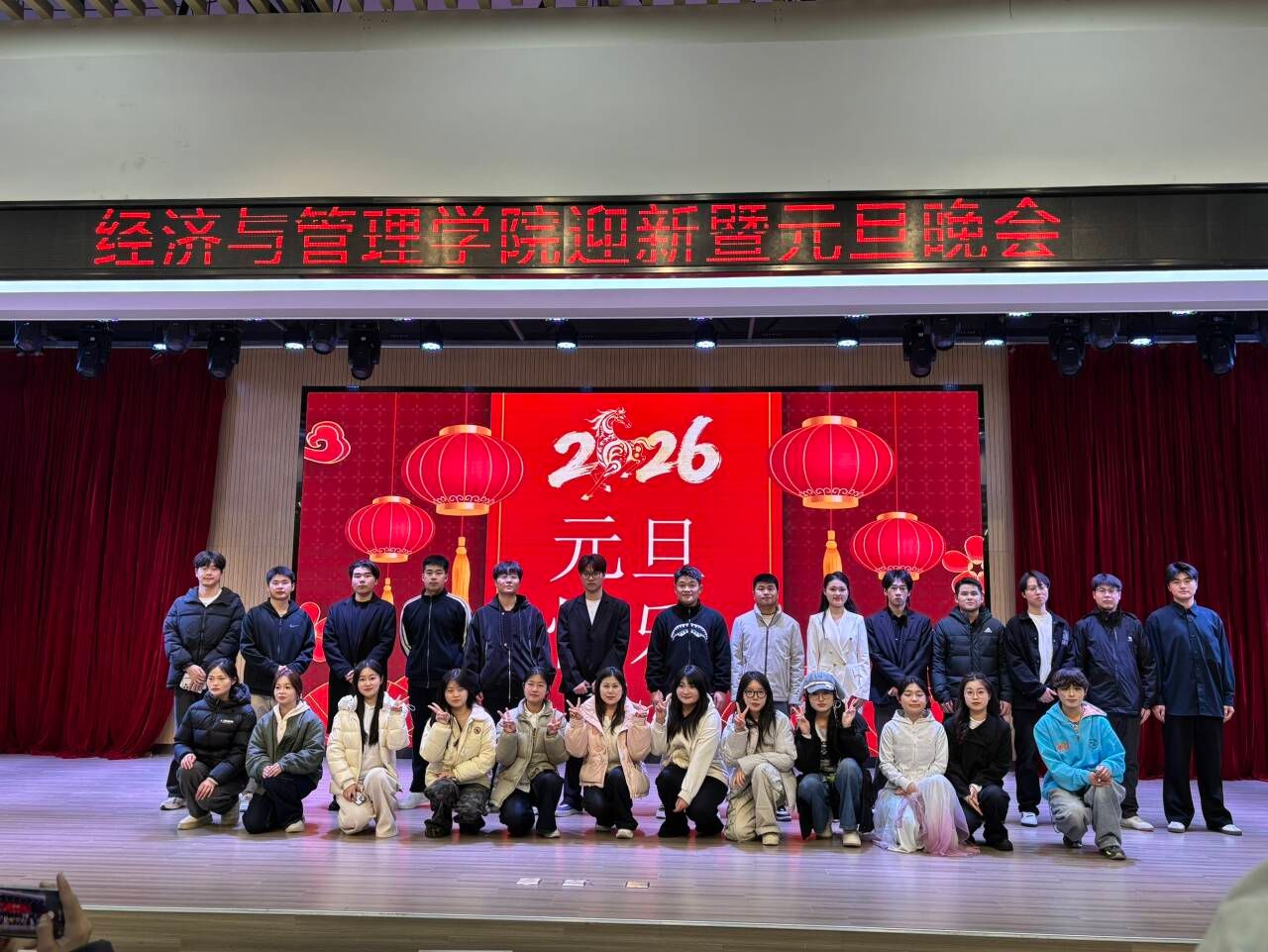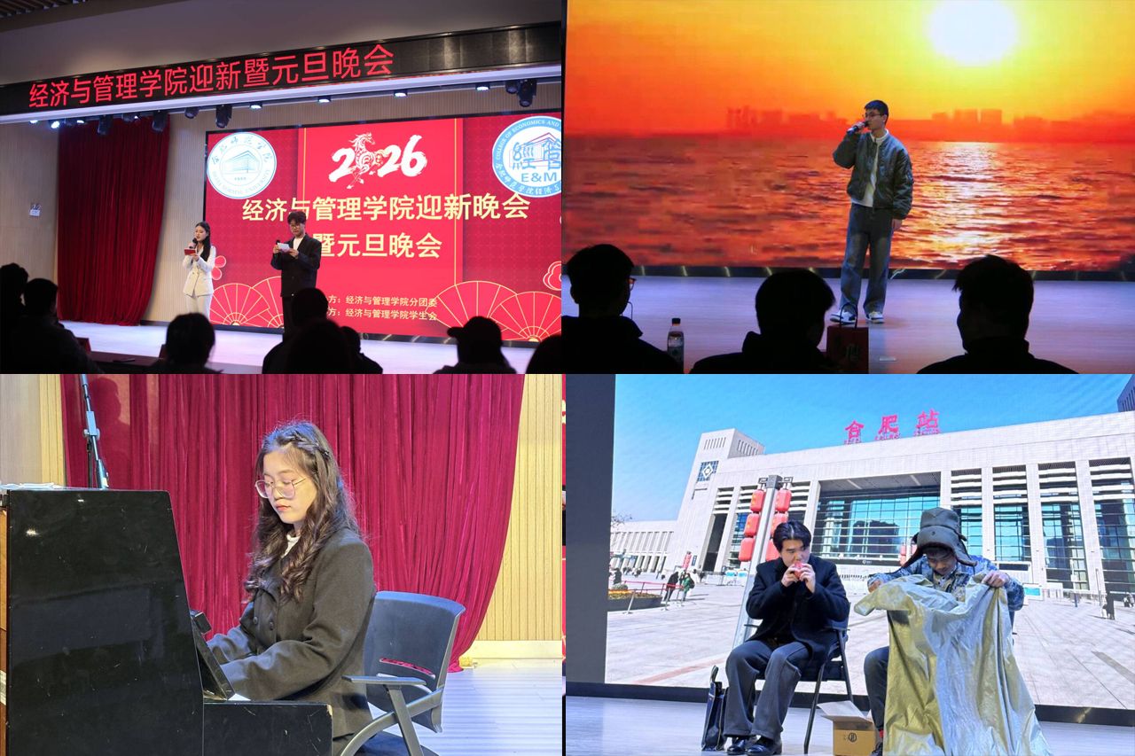 12月28日晚,经济与管理学院迎新暨元旦晚会在热烈欢快、青春洋溢的氛围中成功举办。晚会融合了迎新之喜与元旦之庆,为全院师生呈现了一场精彩纷呈的文化盛宴,展现了经管学子昂扬的精神风貌与卓越的综合素养。
